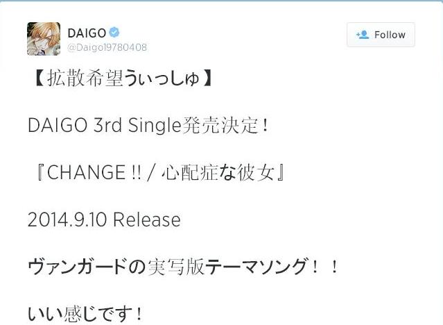 DAIGO昨晚也有在ニコニコ动画 DAIGO P里宣布