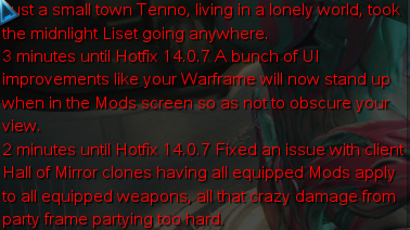 The player's Warframe will now stand up when in the Mods screen so as not to obscure the player's view.