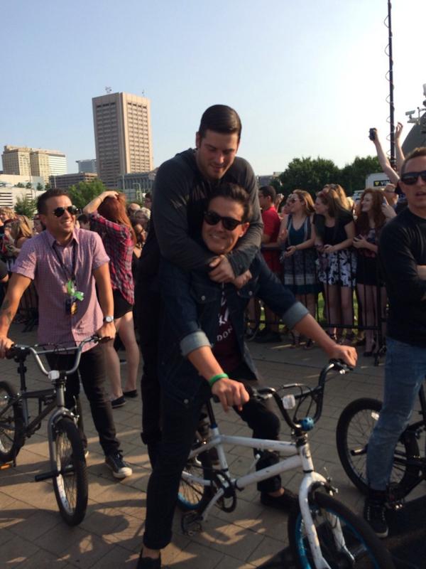 YC和ATL俩逗比乐队骑着自行车进红毯 =。=