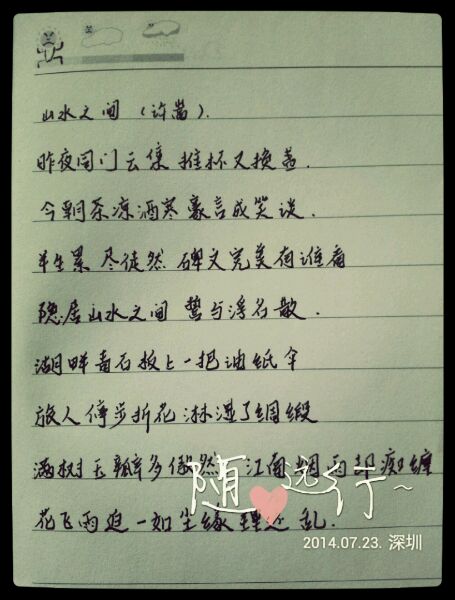 【不如吃茶去】山水之间歌词楼主唯美手写版~