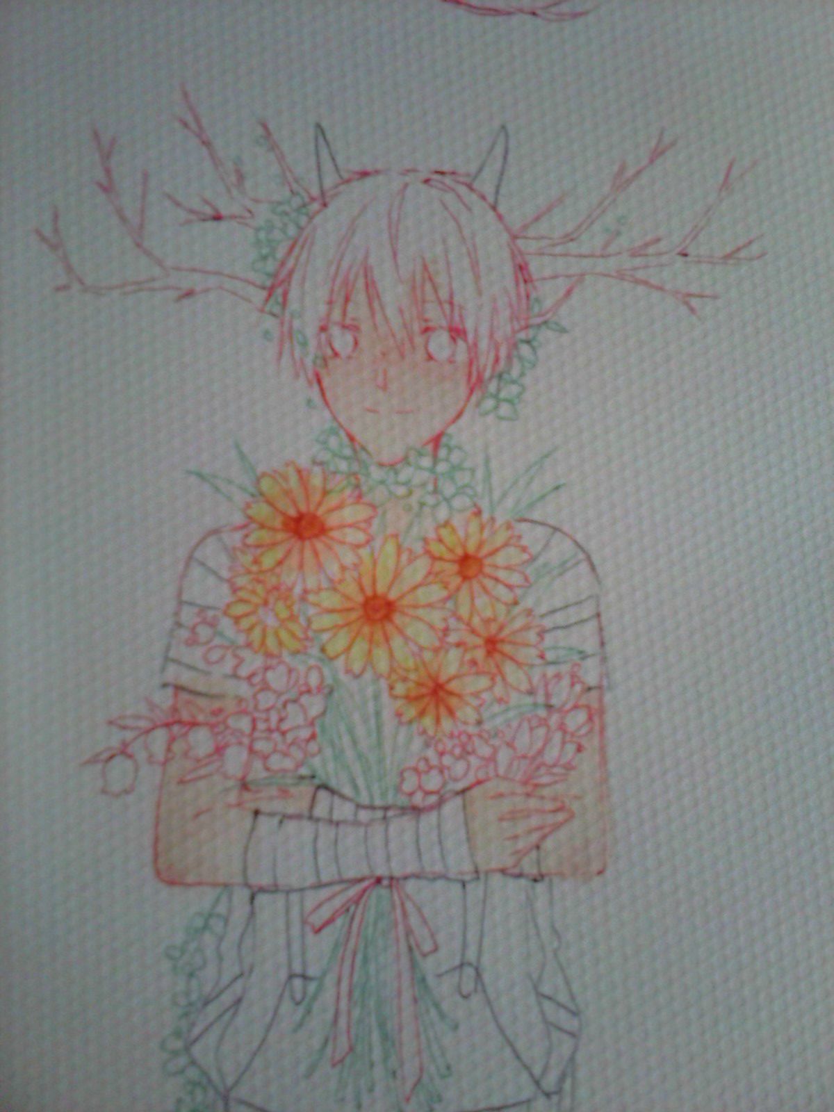 接下来是上黄色。给花饰铺个底色,颜色不要太深。可以多参点水QUQ