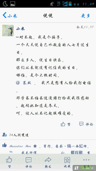 我整个人的喷人细胞都活了,真心矫情到受不了。但是我没有喷,我只是默默的回复了他。