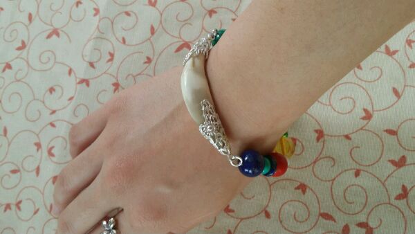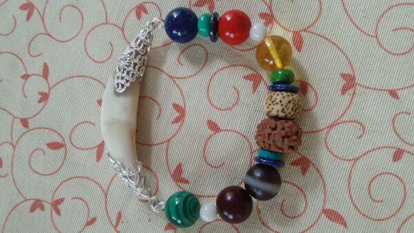 有琥珀了,就没放蜜蜡。舒俱来石也不错(^_^)现在我把牙戴脖子上了~