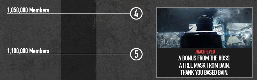 1050000人时,所有的社区人员能在10月18号免费下载1代的payday,就像V社圣诞节免费送L4D2和之前狙击精英V2免费送一样