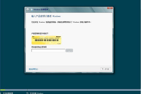 5.然后来进入输入产品密钥的界面,输入密钥以后点击下一步