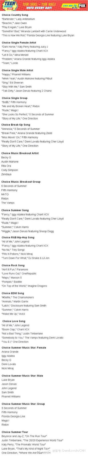 【WeLoveDaya】Z获得了2014美国青少年选择奖的提名!!