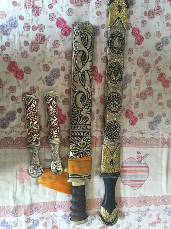 看了这么多,终于看到一个买到真刀的.不过这款也不是拉孜最有名的刀.刀身不太厚,刀重也很一般.