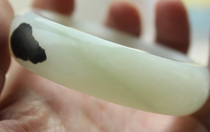 这个镯子,卖家说是俄黑皮料,带翠,我看不懂了,前辈们给讲讲呗!
