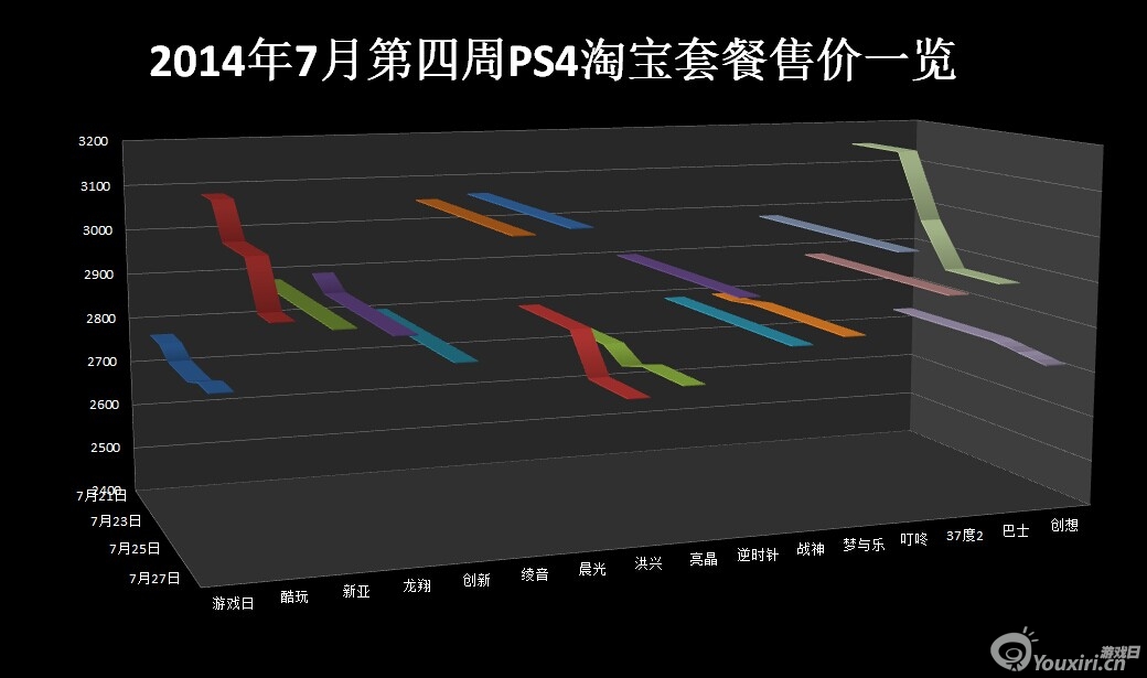 首先给大家提供的是2014年七月份第四周PS4淘宝标配和套餐的售价数据: