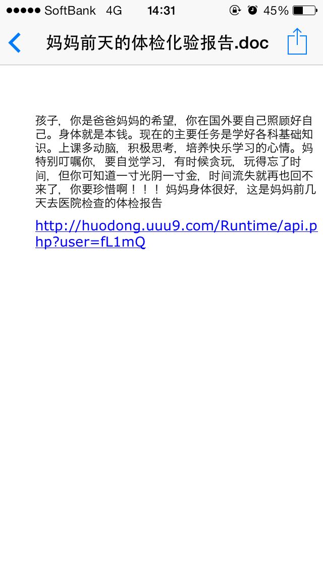回复 曾经的夜猫子 :我后来又仔细想了想,估计是你下载那份文档或者点开链接就会中病毒的那种赶脚,嗯,应该是这样