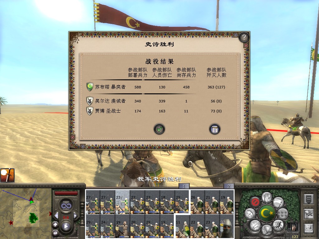 刷了一波新的蒙古军,于是蒙古摆出长蛇阵回去接援军,之前攻巴格达被打残的两只军队落在最后,果断上去捡便宜。