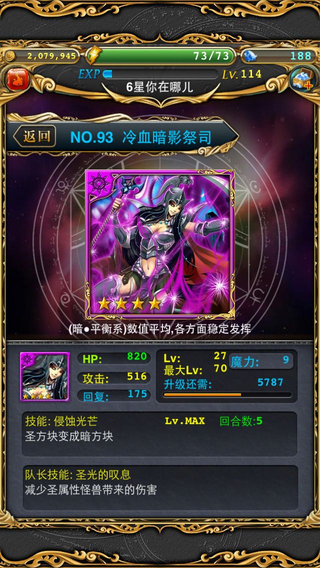 祭司貌似开五星了,不过当时好像是五星的队长技不太好我就没着急进化,它再一转,火心圣三转暗,再加上苍蝇这种逆天的存在,再是二倍队,呵呵
