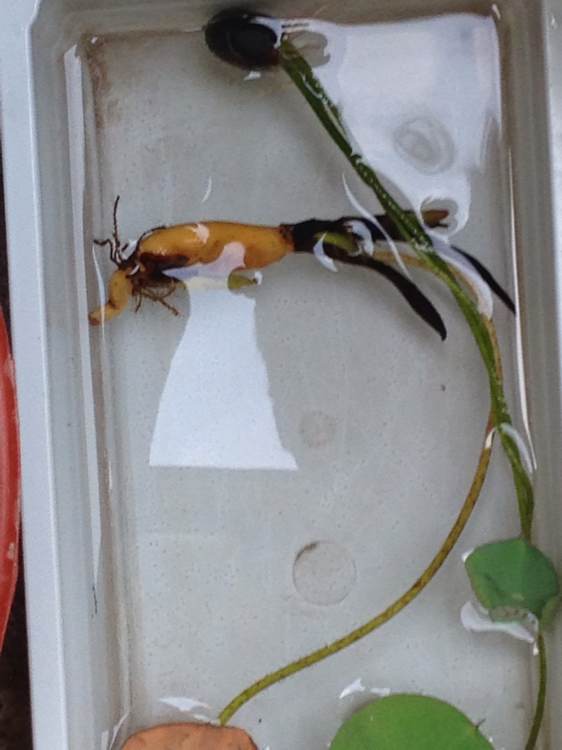 缓苗两日,惊喜连连。定植一夜后,马上就长藕鞭,不愧是神女!赤碗3日后,出的类似立叶般雄壮的茎,我森森地被震撼了!