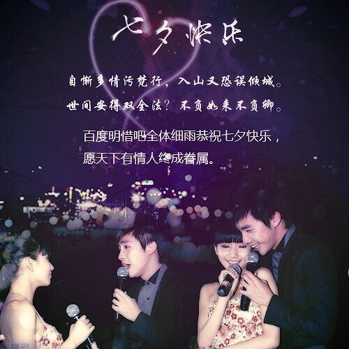 百度明惜吧全体细雨祝贵吧七夕快乐。