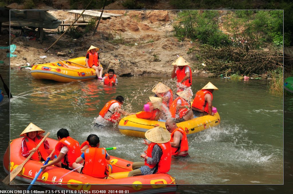 【温馨提示】 如影友去游玩 尽量别带相机了,拍摄主题除外,如果要带,尽量做好防水措施。。。。。。呵呵。出发时带些衣服,漂流近三个小时左右,中间“游击战、伏击、狙击”等等,全身上下全都会湿透,换洗衣服带好,上岸后直接换上干净衣服回家,我们早起五点出发 下午六点半到家,呵呵 只是一个字——累