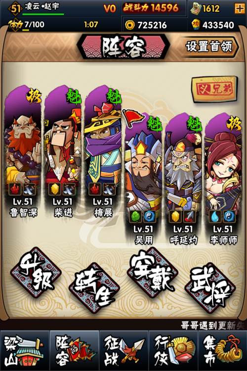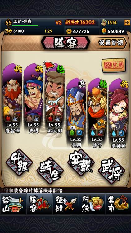 奶追加爆追,大郎因为刚开始玩的时候觉得他长得太丑所以融了一次,之后断续融了譬如雷横这种的,吴总是今天刚得的,我攒了好久的刷新就这样都没了。。