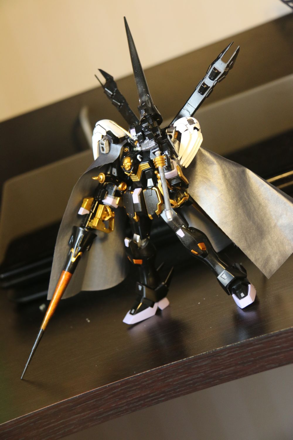 今天终于有时间来练练手咯,于是我的地狱死神…的翅膀遭殃了,正式的试试max喷,这次喷得不太均匀,请轻拍,另外在完成了上色的程序后,试了试MGM的镜面冷烤漆,在一旁吸烟的时候悲剧了,灰尘和烟灰都有点粘上去了,希望硬了之后影响不太大吧