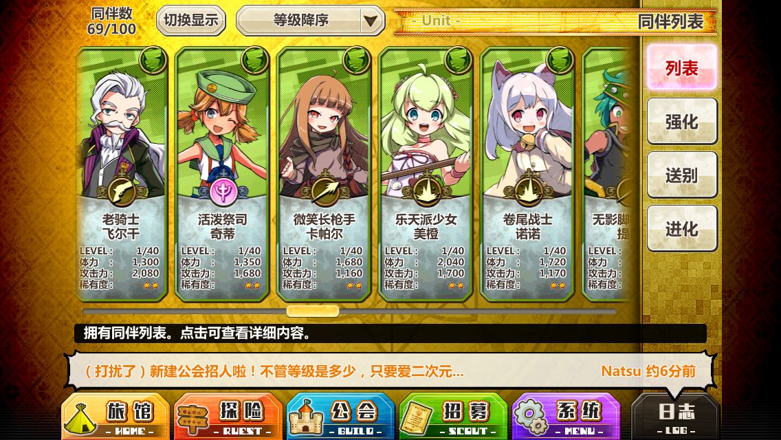 寂然 亚德 枇枇 星杖 苍法 能进化的进化 带火UP水UP对火ATK上升魔宠 可以打公会战 推图就带3个群发后排 只能杂色