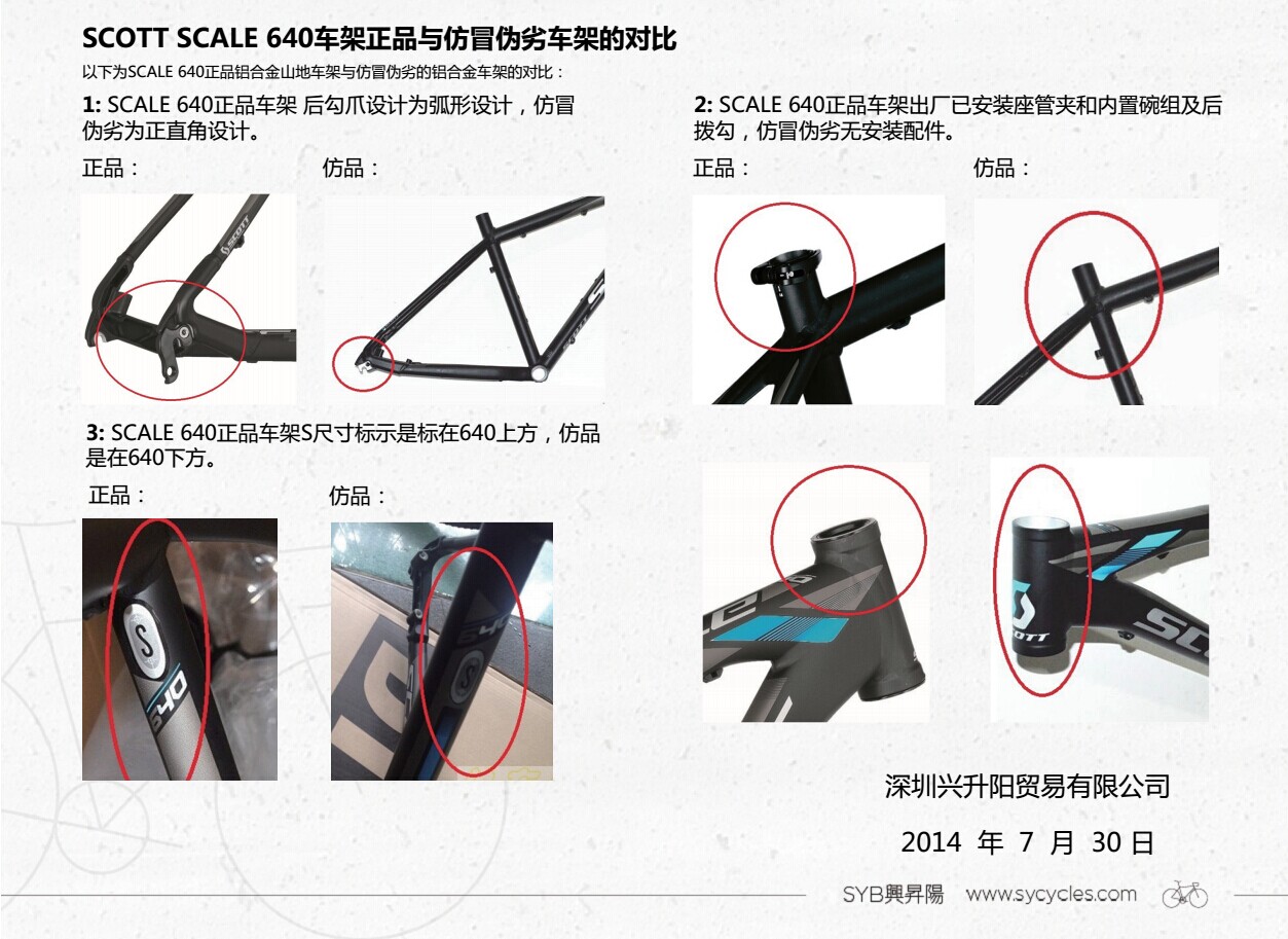 SCOTT SCALE 640车架正品与仿冒伪劣车架的对比
