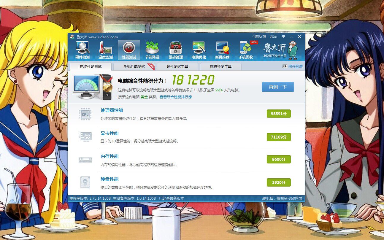 鲁大师就是跑着玩得东西,完全没有实际意义。你应该中高档没问题,人多话可能就不行了