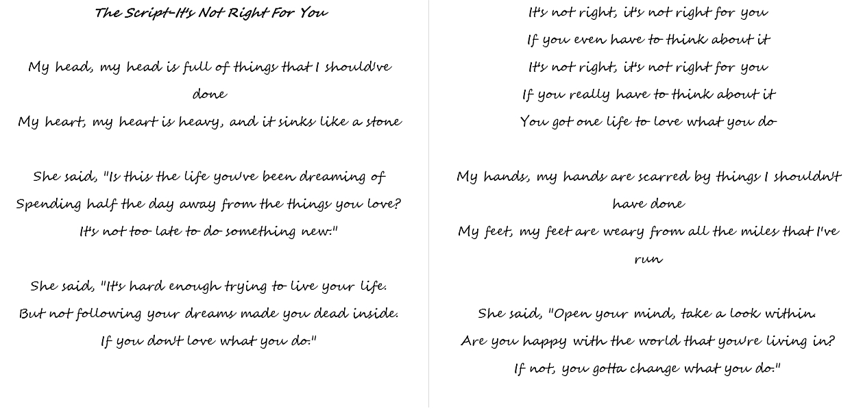 【TS】It's not right for you 歌词