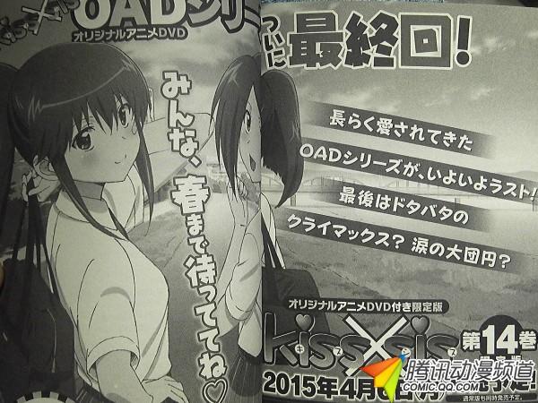 由日本漫画家Ditama某所创作的青年漫画《亲吻姐姐》自从2010年4月被改编成TV动画播出之后,凭借大胆开放的剧情和个性丰富的人设,至今都拥有着不少忠实簇拥。而在TV动画完结之后,该作品的动画化则以OAD的形式继续进行。不过根据最新的杂志偷跑消息,OAD系列的最新作将附赠在单行本第14卷限定版(2015年4月6日)当中,并且这也是整个系列的最后一部作品。官方使用了“长年以来被大家喜爱的OAD系列,终于走到了终点!最后究竟是喧闹的喜剧高潮?还是饱含泪水的大团圆呢?”这样的字眼,相信对于粉丝们来说,这也将是不容错过的产品了吧。