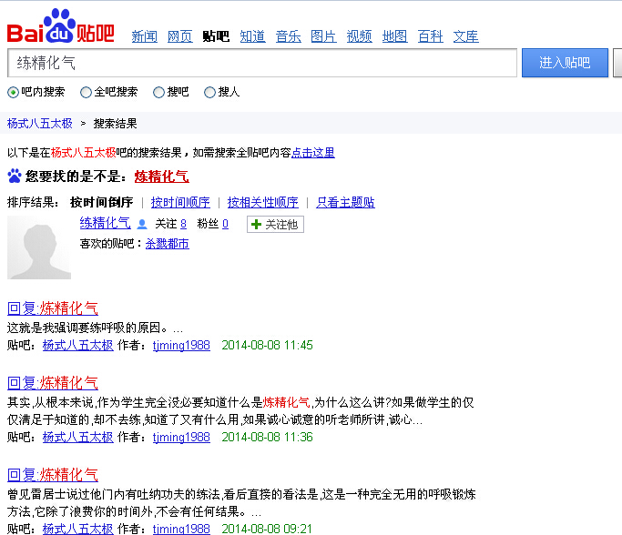 虚空太极 :回复 神马学太极 :你有练出气了吗?如果没有,你懂什么叫练精化气?2014-8-11 10:01 回复