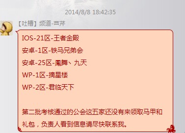 这是第二天精英公会群里管理发的消息,有图有真相,IOS21区是我们