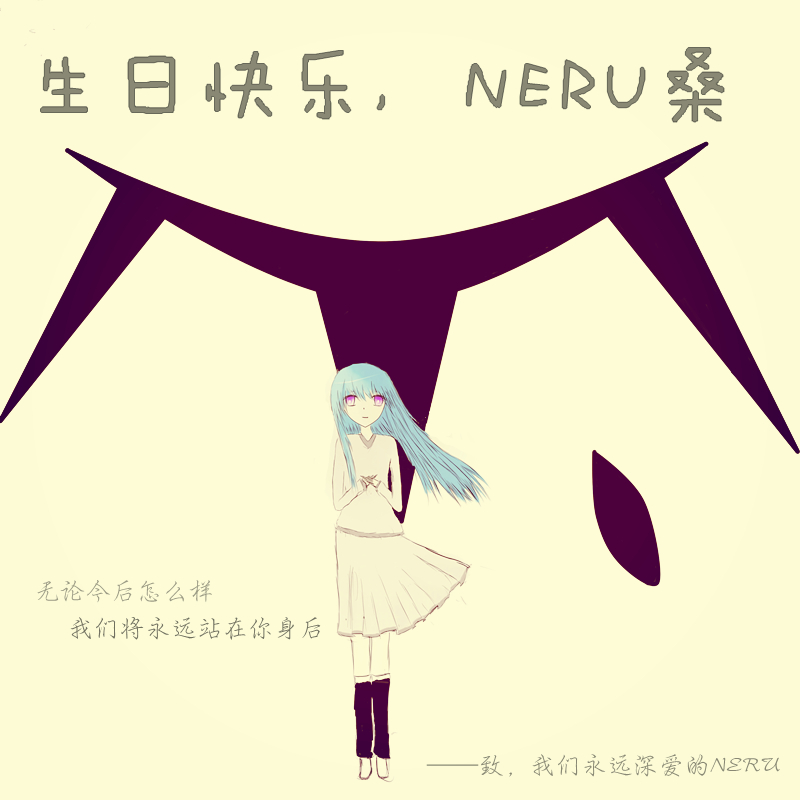 远看还能看近看完全ORZ,图是用SAI画的字是美图秀秀后期糊的……总之,NERU桑生日快乐,在新的一岁里也请多加油哦{{{(>_< )}}}