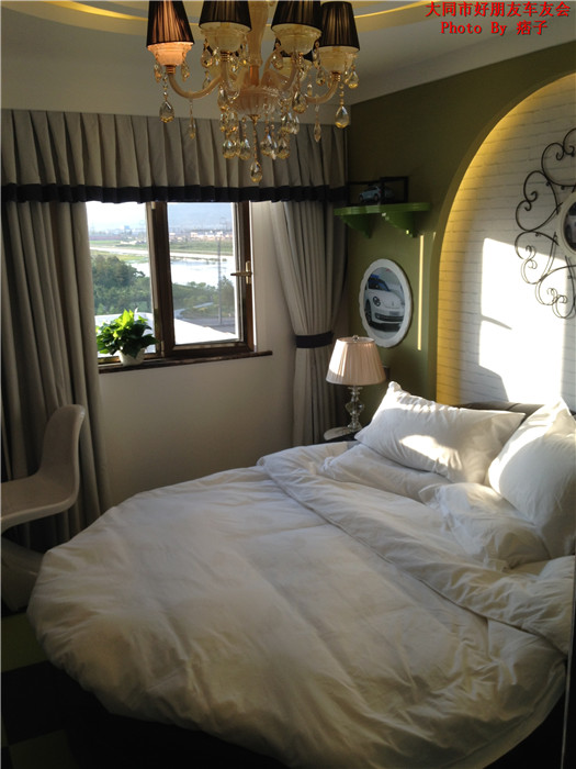 图片来自:痞子晖的百度相册速联汽车主题酒店是华北地区唯一一家以汽车元素为主题的特色酒店,酒店坐落在风景秀美的庞大汽车工业园区东侧比亚迪4S店楼上,周围绿树葱笼,流水潺潺。独一无二的客房风格是您休养生息的世外桃源,对于爱车族来说,聚会的好地方,速联:为你的爱所生。