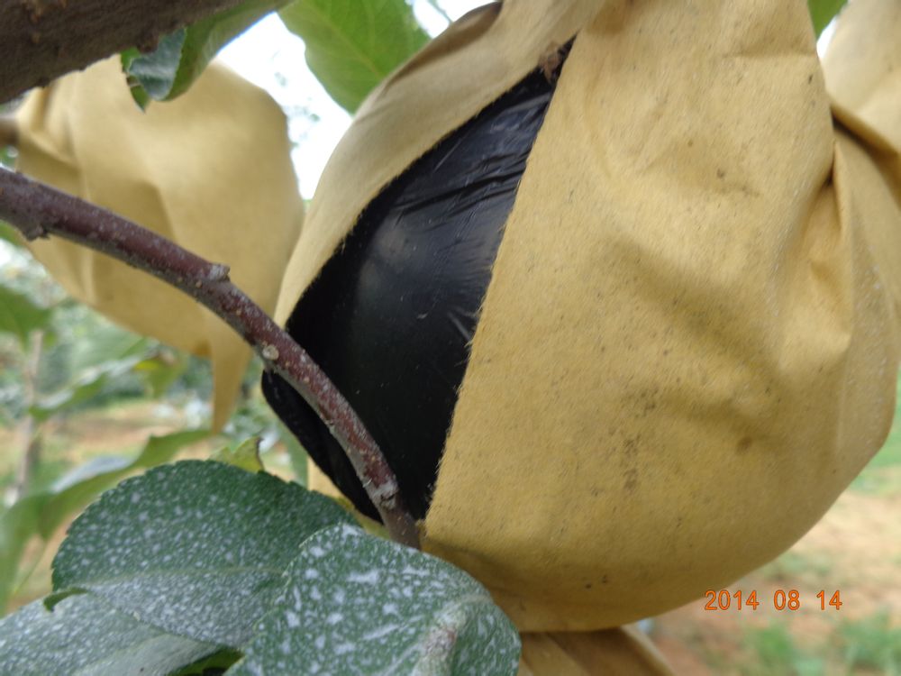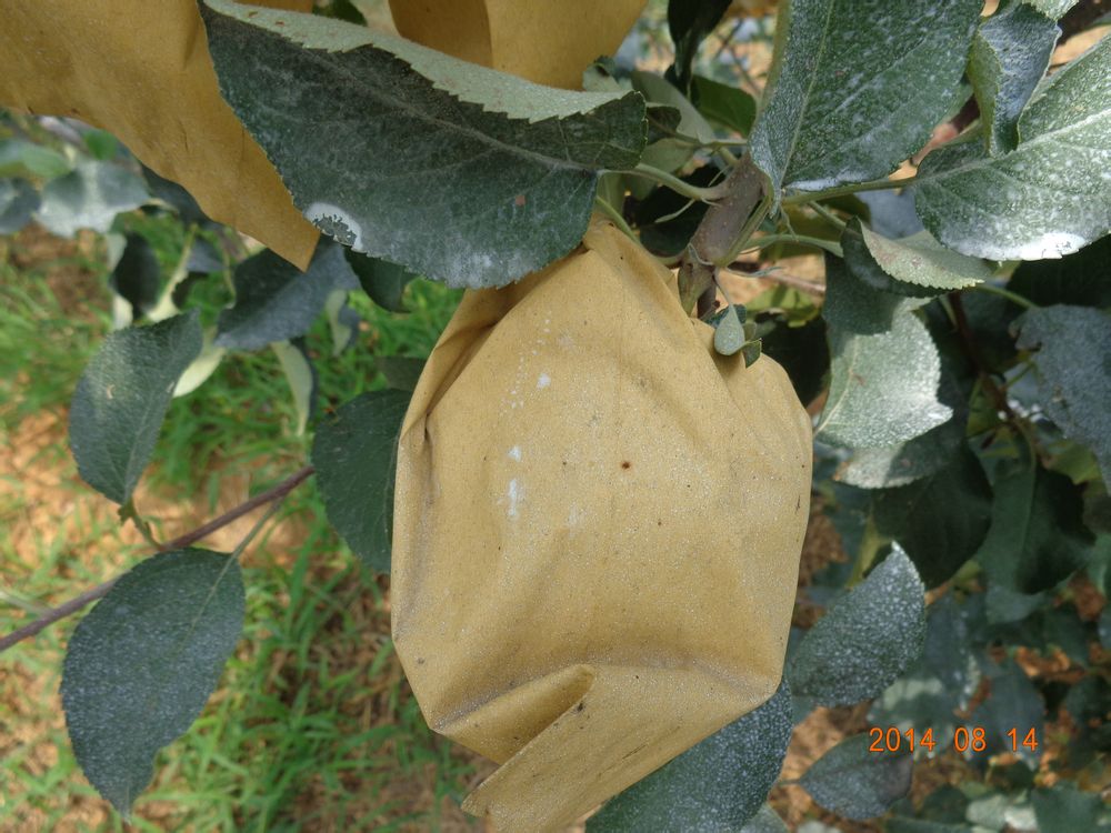 好大的苹果呀!早已把袋撑爆了。到采收时能长120mm吧,钱袋子也会撑爆的。恭喜发财!