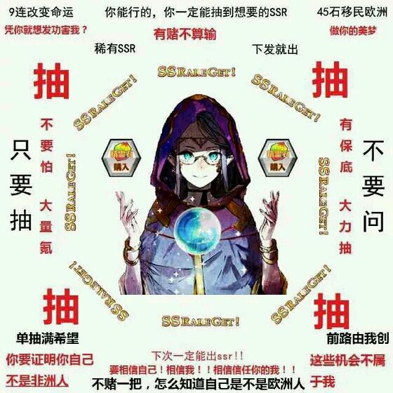 回复 lucifer056 :龙之谷现在up,你如果抽到两张男的五星卡就恭喜了,骑士抽圣都,司机花奶鬼妹圣女,但是现在没up,出五星概率小,副都只要没抽到弓,其他基本都可以