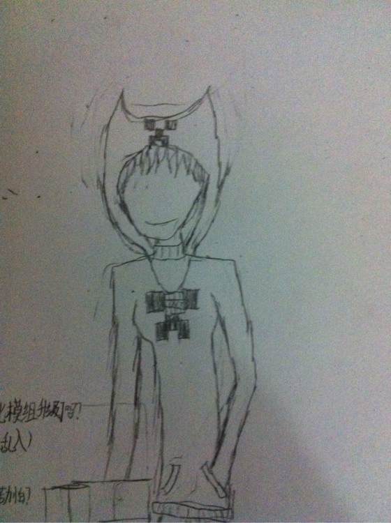 [外貌]金黄色的中长发,穿着一件深绿色的衣帽,帽子上有一只苦力怕。穿着一双深绿色皮靴。【详见图片】五官中只有嘴巴。