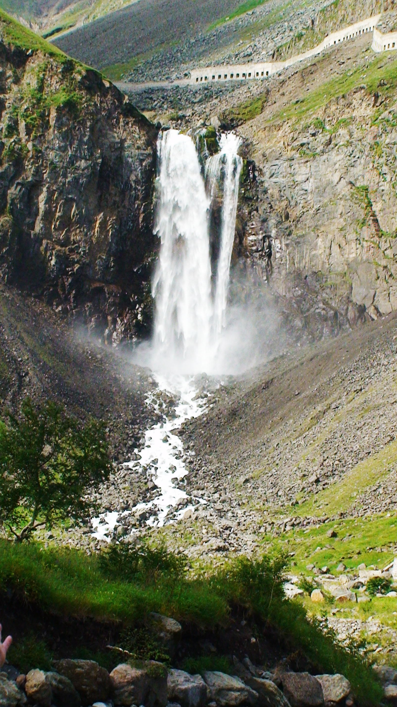 近观瀑布游人漫步的玉带彩虹长廊!