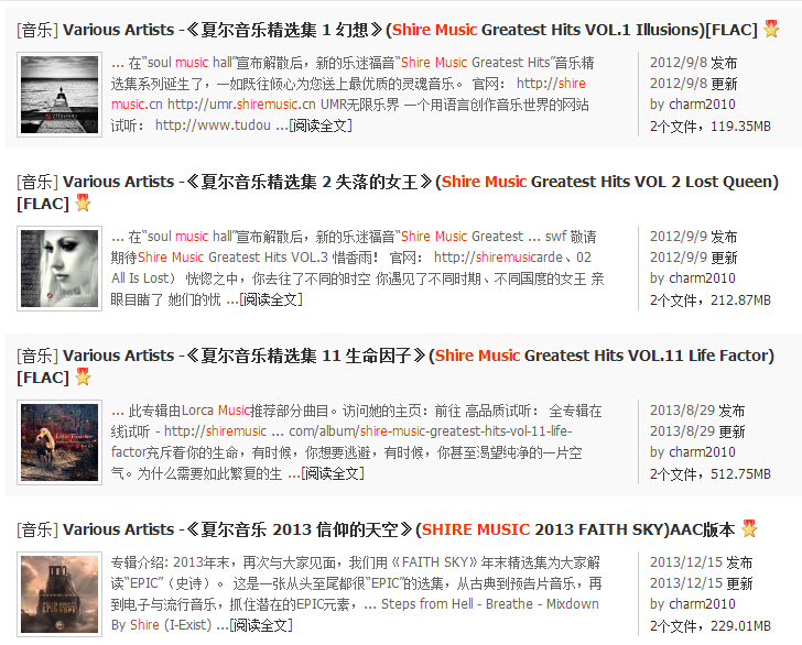 不知道大家听过我的精选集系列没有:http://shiremusic.bandcamp.com/music就是这个: