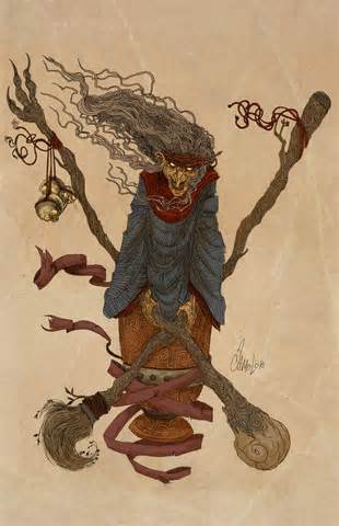 Baba Yaga,斯拉夫民间传说中的女巫,专吃小孩。
