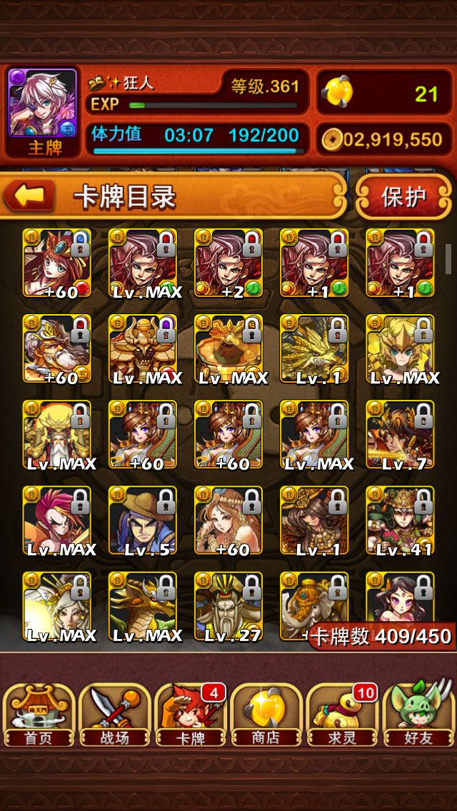 接触附文实属偶然、不知道怎么就稀里糊涂的下载了这个游戏、迷迷糊糊的玩到现在也有160天了。没玩出什么水平、但是真心喜欢。一共只有56张满级卡、加号更是少的可怜只有16张满了。也没少填坑、奶奶是怨念啊!!!