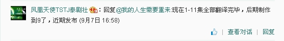 凤凰天使TSTJ泰剧社,现在1-11集全部翻译完毕,后期制作到9了,近期发布