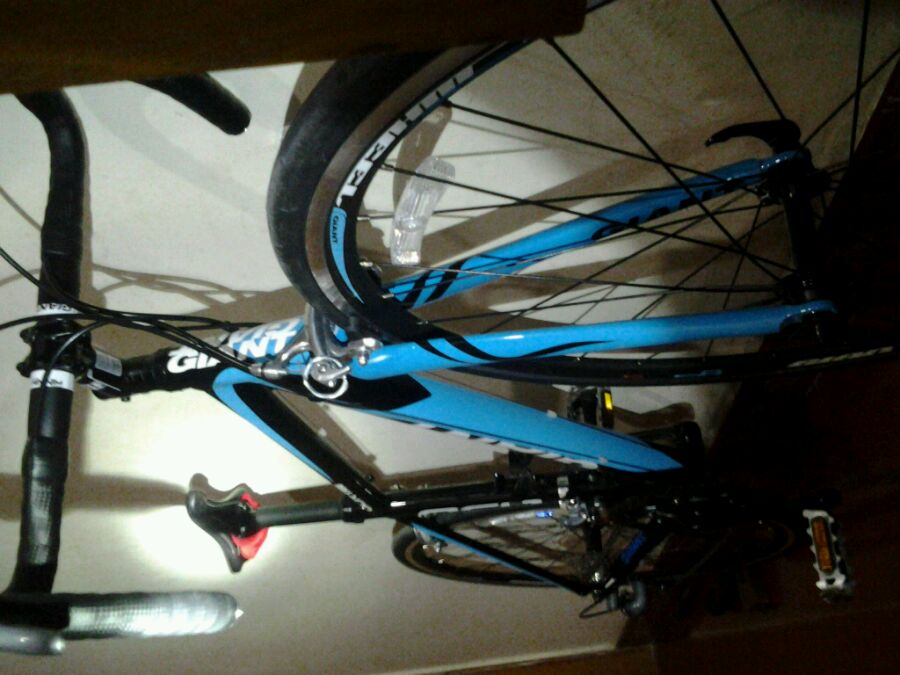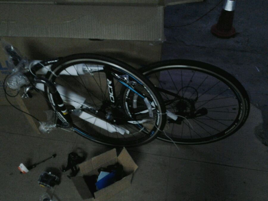 车子到了哈,空运过来,还是挺快的,唉!曾经多少个夜晚意淫着各种豪车,玩车两年终于有属于自己的公路车,脱离键盘党,实在激动啊,虽然只是入门车,但毕竟终于进入公路党了。2358+100运费,送了两个水壶架,转换头还有护链贴,到了直接在快递店门口装引围观啊哈哈,新车骑起来倍爽,实车比图片帅不知多少倍,这颜色和sky骑行服太搭了,[爱心][爱心]