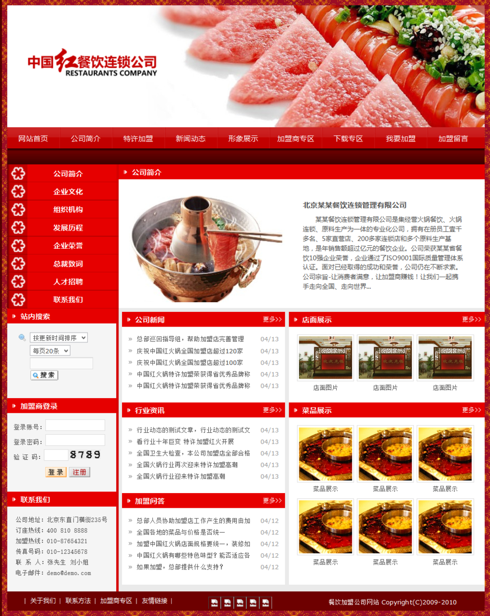 免费PHPWEB成品网站 红色火锅餐饮类风格模板