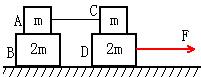 如图所示,光滑水平面上放置质量分别为m和2m的四个物块,其中两个质量为m的物块间用一不可伸长的轻绳相连 。现用水平拉力F拉其中一个质量为2m的物块,使四个物块以同一加速度运动,则轻绳对C物块的最大拉力为 多少