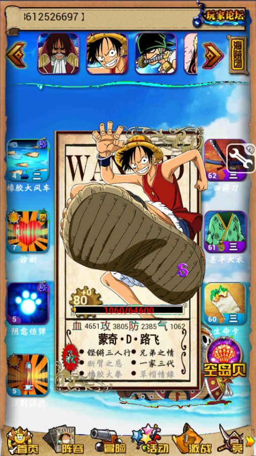 原来是玩忍者的,v11,假期看了海贼就疯狂爱上了海贼,所以现在转来玩海贼啦。