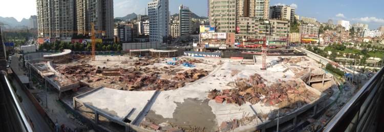 靠近五龙桥的广场主体地面部分今天已经开始浇筑水泥。靠近拥军路那边视觉上没有什么进度。靠近长城花园这部分的地下设施完全封顶,正在焊工,等待浇筑水泥。个人认为这个进度还算快的。