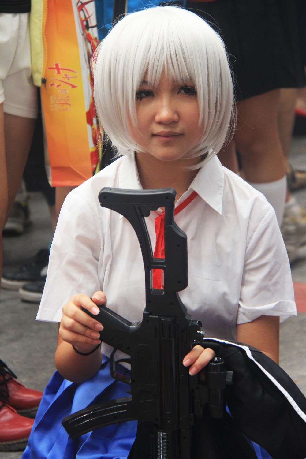 楼主有没有闪到一只小鸠 金色双马尾手上抱着一只兔子的