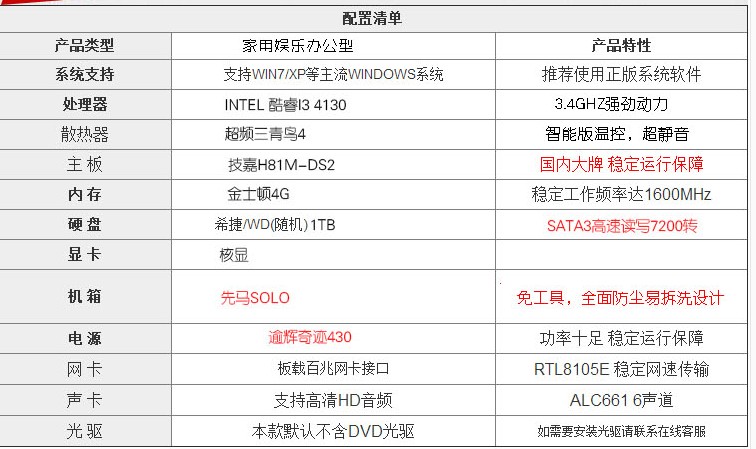 这款是1899 目前I3的话 家用办公都可以 4代I3 集显已经达到HD 4400 跑个LOL 不开最高特效还是可以跑跑的 4G内存 家用办公首选