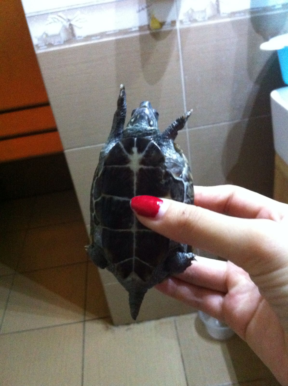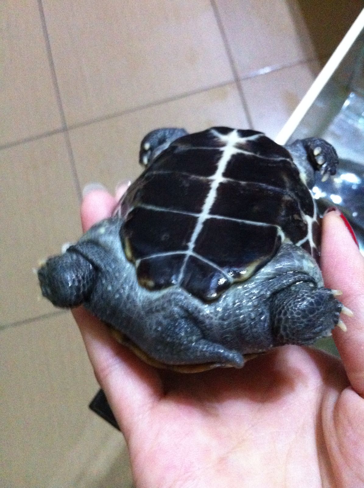 这是阿暮 从照片可以看出来 它挺小的 (虽然比阿墨稍大一点 )但这两个龟我是从龟苗开始养的 到现在九年多了 感觉跟人家养了五年的差不多大 (我是从上幼儿园开始养 现在我16应该都不止9年了)