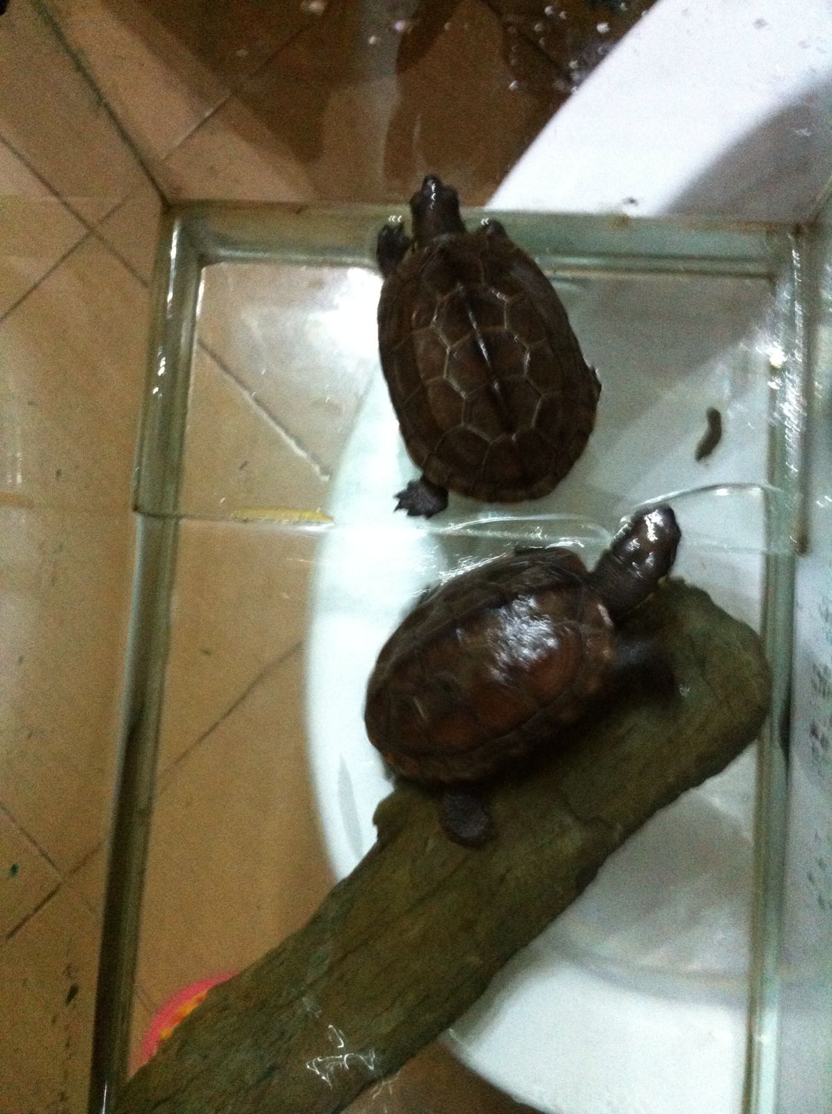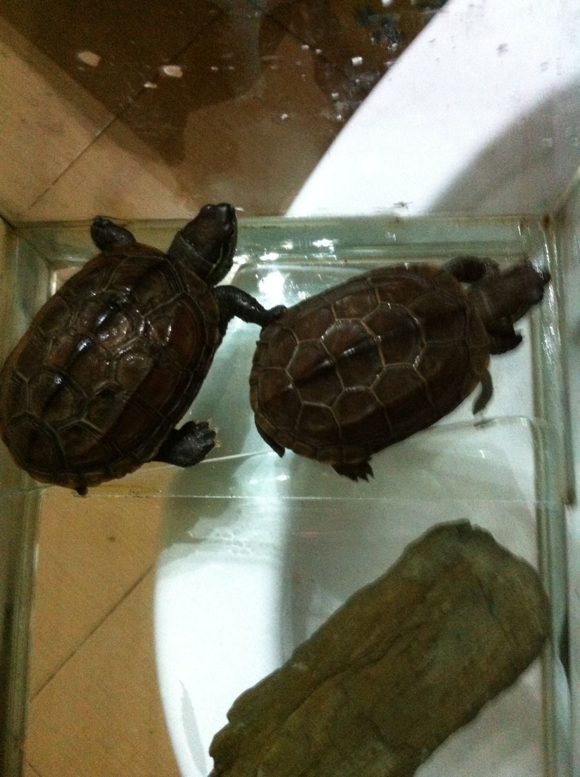 我的两只草龟 阿暮和阿墨(稍大一点的是阿暮 小一点的是阿墨. 因为刚开始阿墨颜色更深一点 所以对它的墨化有很大期望)