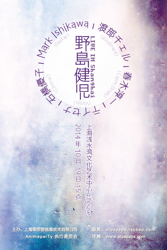 日本著名声优兼歌手野岛健儿将携众多著名音乐制作人来到上海浅水湾文化艺术中心举办在华首场个人live。