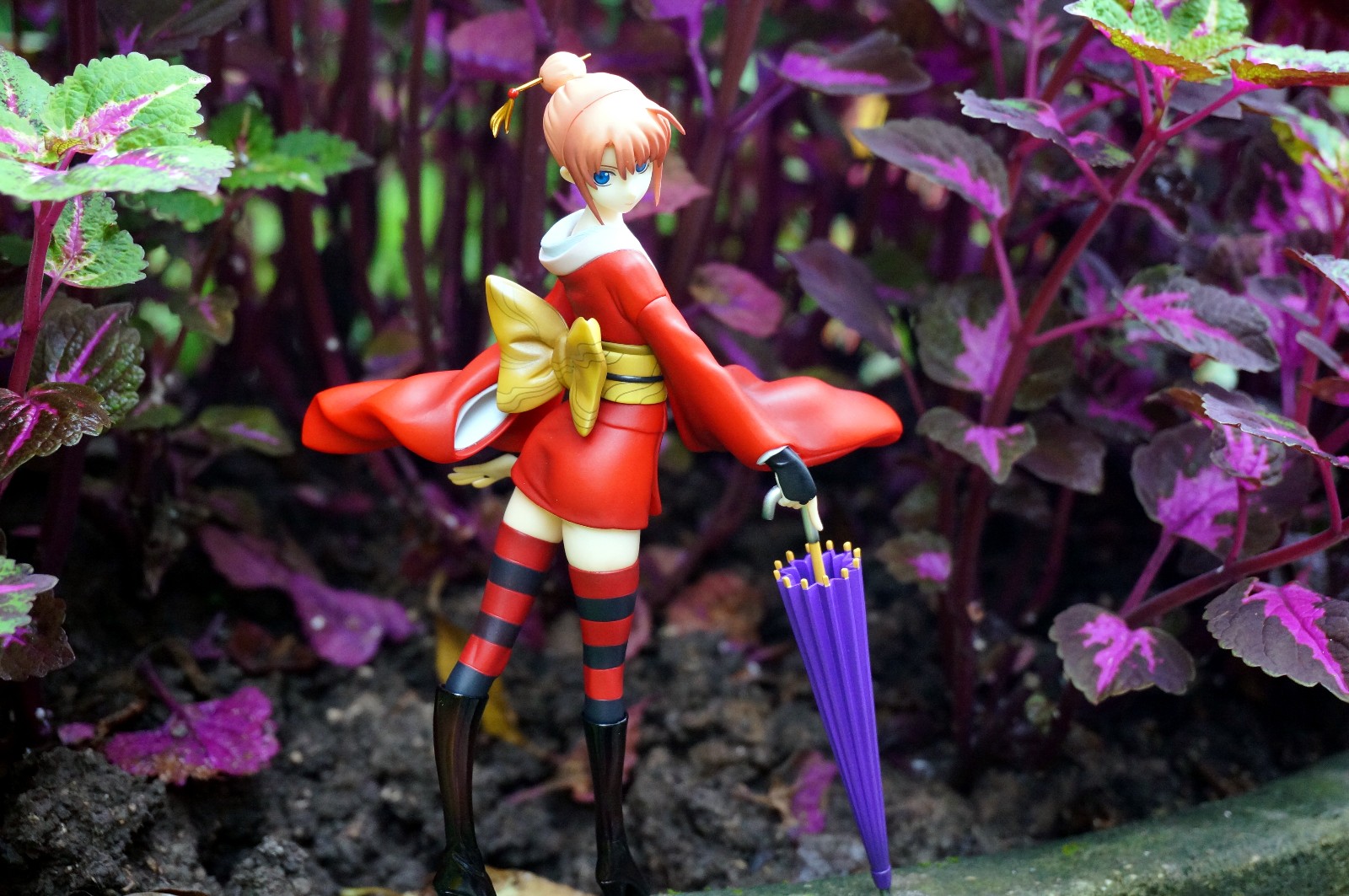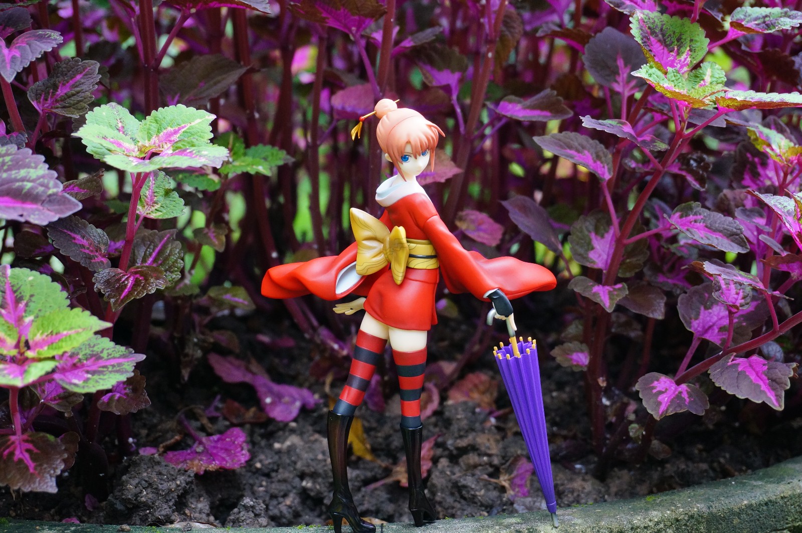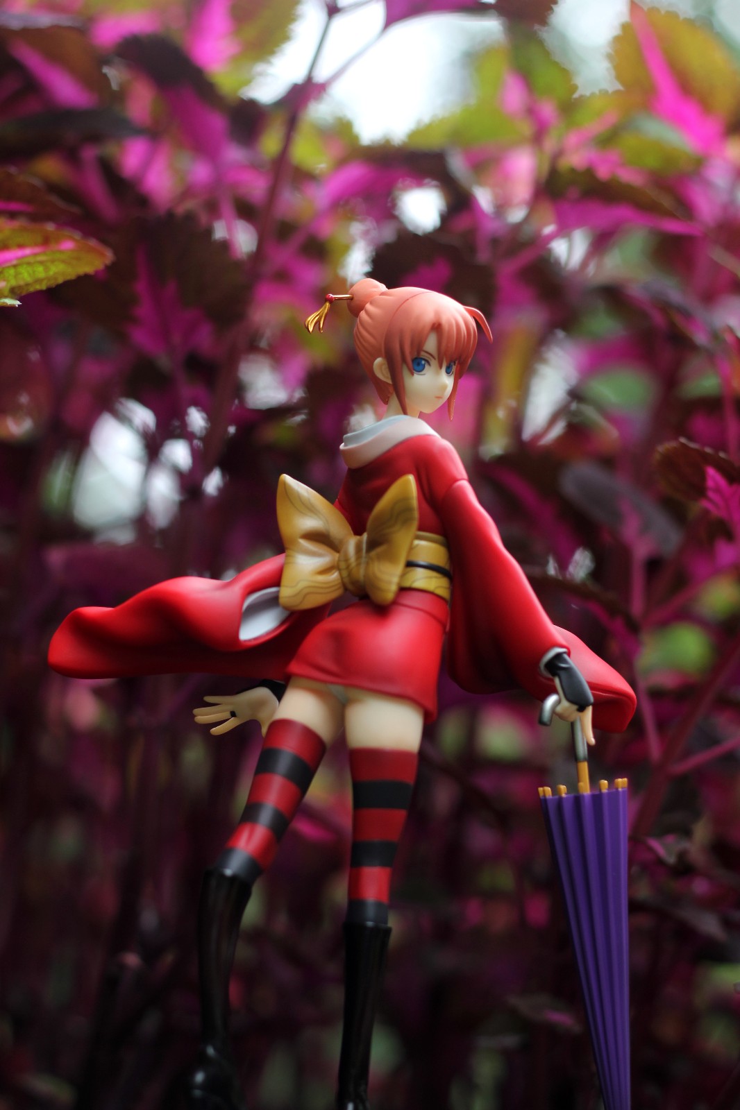 这次由于考虑到当天下雨,其实外拍的只带了MH的神乐吉原炎上VER.印象里面应该是去年年中的一款作品了,感觉这款拿着小伞华丽路过的造型是非常适合外拍的,这次也拿到静安公园里试验了一下,试了几个小场景,总体来说还行吧,由于这款手办比例略小,和整体的景物如何进行搭配就需要花一点心思了
