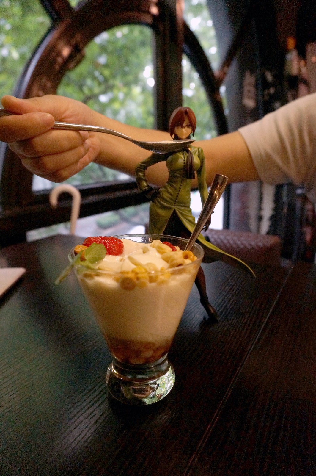 接下来是睡衣Saber,之前我也针对这款小厂作品进行过一次简单评测,总体来说素质尚可,这次呢,也特意到甜品店带上她进行了一次外拍,用了一些恶搞向的拍摄手法,个人觉得呢,这款小厂作品整体还是不错的,小巧的身材可以搭配店内的餐具,比如我们照片中的的这款特制立秋甜品=3=,希望各位喜欢
